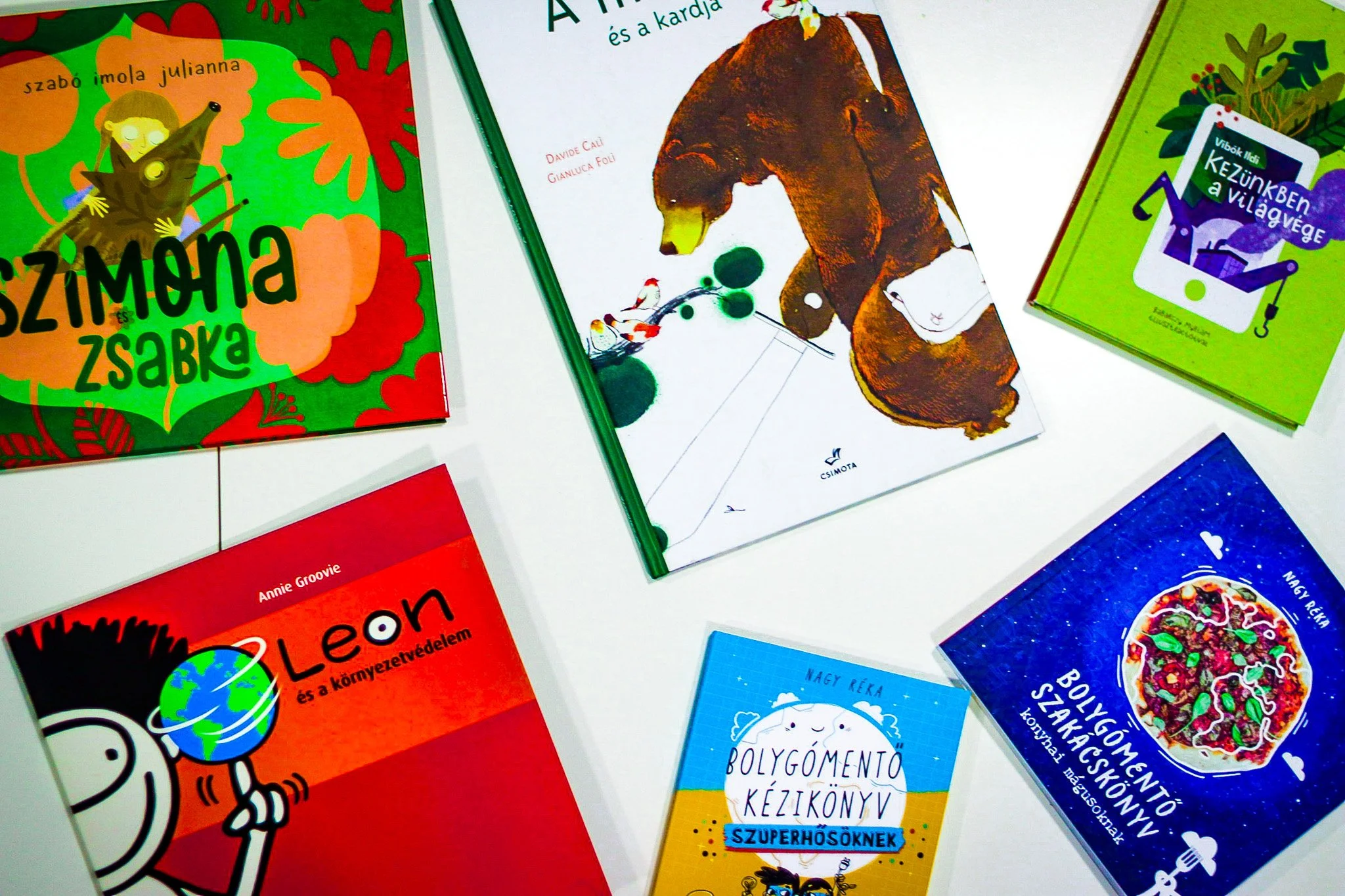 Eco-themed Hungarian children’s books showcased at the Anyahajó event on green thinking and storytelling.